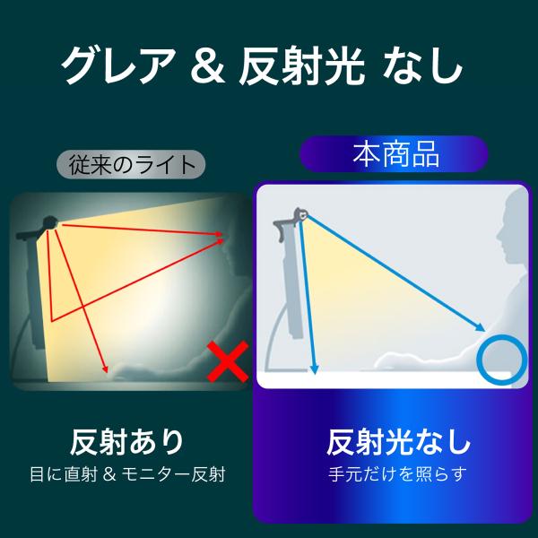 非対称配光設計でデスクのみを照らし、画面の反射を低減! ワンタッチで明るさ調節が可能