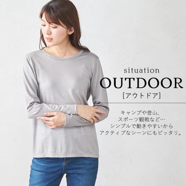 メリノウール 日本製 tシャツ インナー 登山 シャツ 長袖 レディース クルーネック 無地 カットソー 長袖tシャツ アンダーウェア