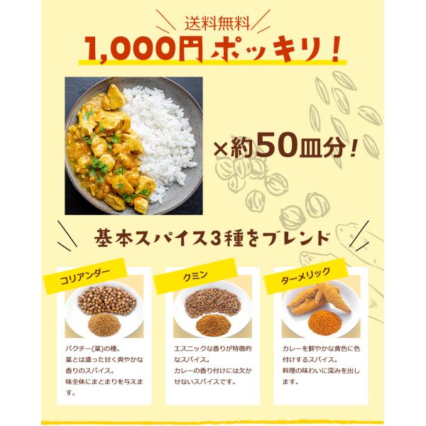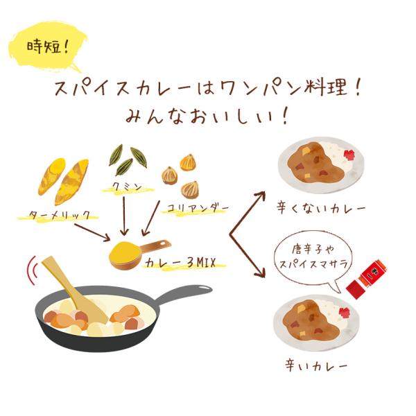 カレー の基本となる スパイス 、 ターメリック 、 クミン 、 コリアンダー をちょうど良いバランスでブレンドしました。