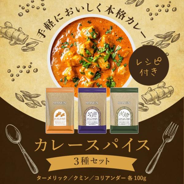 カレースパイス 3種セット 各100g 100皿分 スパイスカレー スパイスセット カレー粉 レシピ付き レビュープレゼント SPANION 爆買