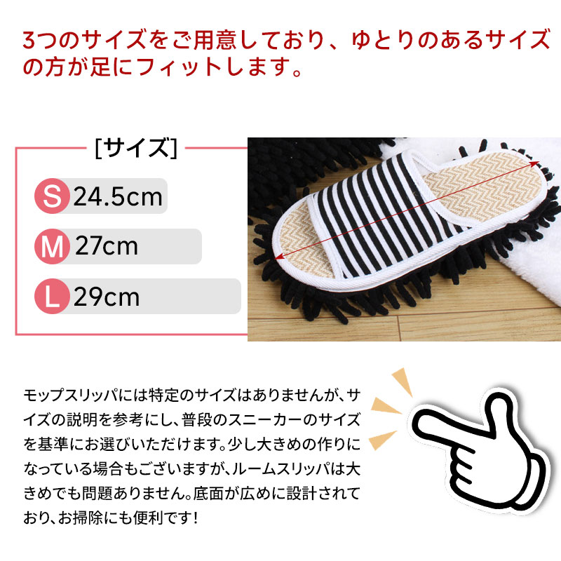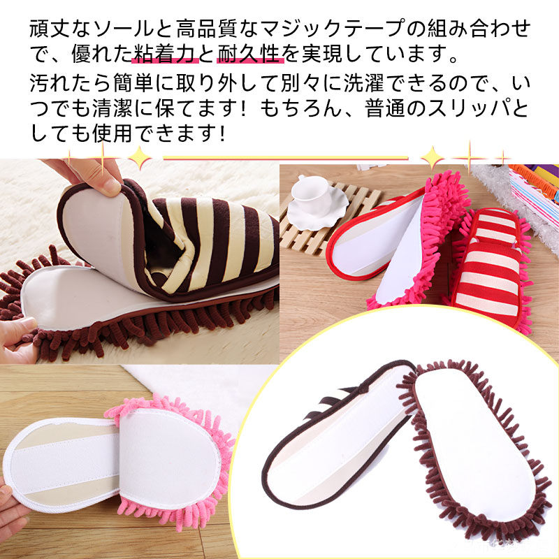 モップスリッパ お掃除グッズ ルームシューズ ボーダー柄 掃除 マイクロファイバー 履くモップ スリッパ 二タイプ選択可能 翌日配達送料無料 秋冬秋冬