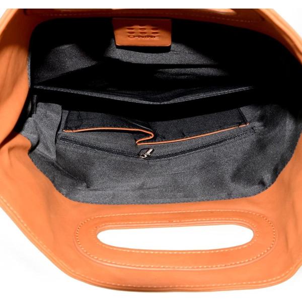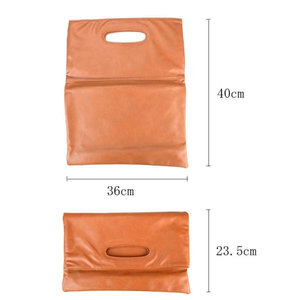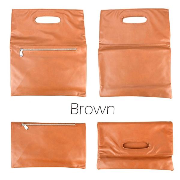 半分に折り曲げてクラッチとして使用できるだけでなく、取っ手が付いてるためそのまま手さげとしても利用可能。