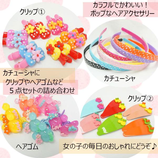 カチューシャにヘアゴムやクリップなど5点セットの詰め合わせです。