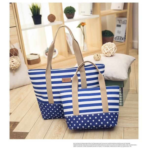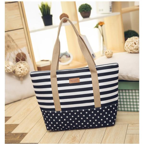 ・ラインと星柄で、飽きないシンプルな帆布トートバッグです。
