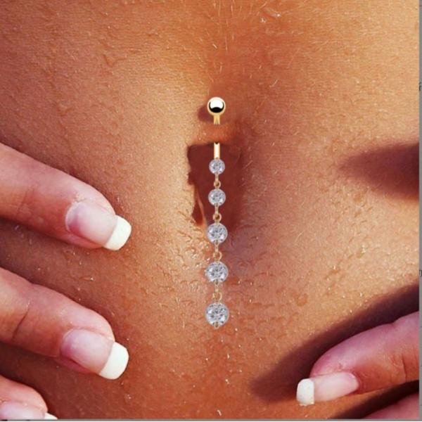 ボディピアス へそピアス 14G へそピ 5連 ボディピベリーリング バナナバーベル 上品 キラキラ 着けやすい