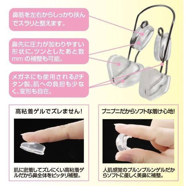 最新の技術で製作、チタンの金属部分の形状を見直して鼻筋や小鼻の矯正力を高め、 ステンレス部分を強化して鼻筋の矯正を強め、シリコン部分はフィット力を強化し従来より大きく滑らかになりました。