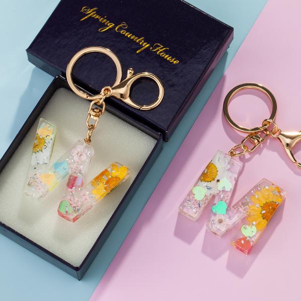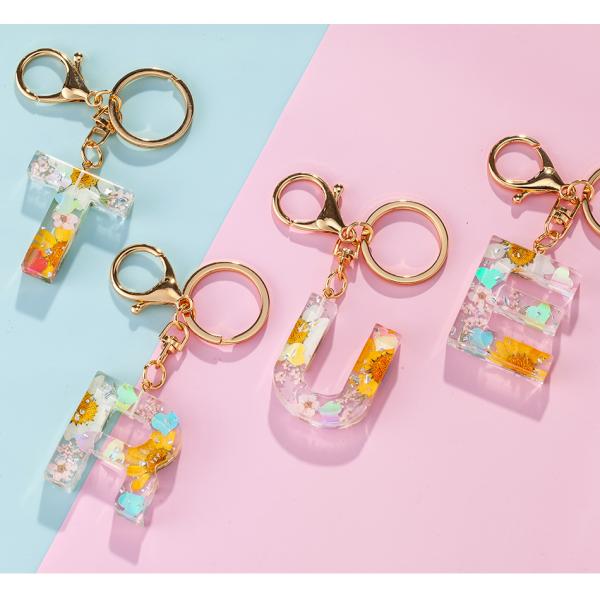 透明で綺麗なハーバリウムのイニシャルキーホルダー 爆買