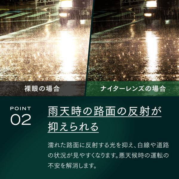 夜間運転を快適に。対向車のヘッドライトなどの光を軽減。