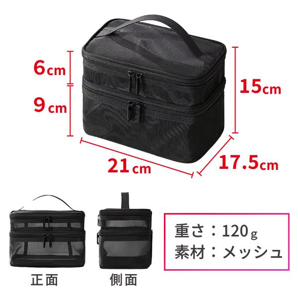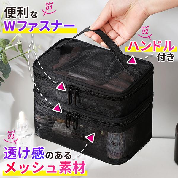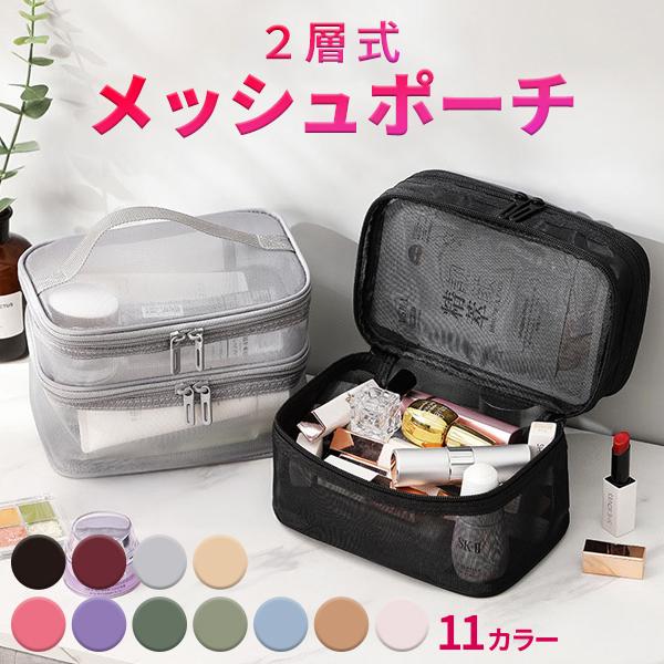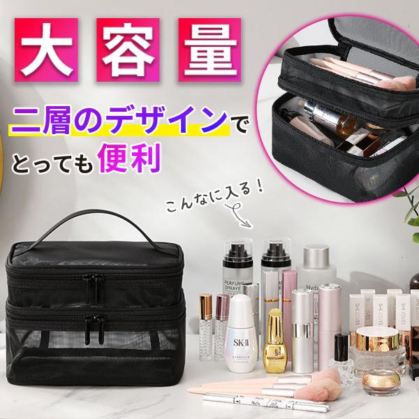 コスメポーチ メッシュポーチ メイクポーチ 化粧ポーチ トラベルポーチ 大容量 二層式 コスメボックス 小物入れ 機能的 旅行 自立