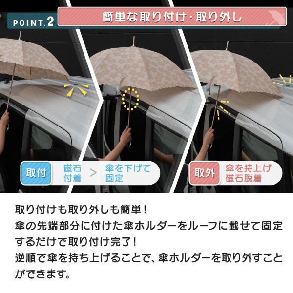 マグネットを付けた傘の先端部分を車のルーフに乗せるだけ