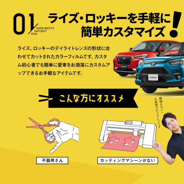 カット済み ライズ ロッキー デイライトカラーフィルム スモーク イエロー ブルー 2p A200A A210A カッティングシート ポイント利用 シェアスタイル