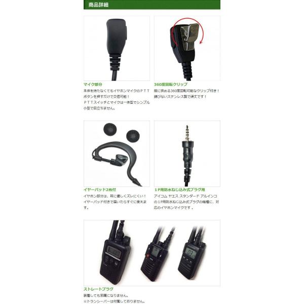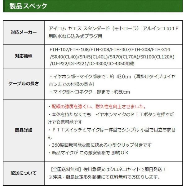 アイコム ヤエス スタンダード(モトローラ) アルインコ の1ピン防水ねじ込み式プラグの機種に、対応のイヤホンマイクです