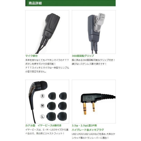 ケンウッド用 イヤホンマイク 2ピン デミトス用 UBZ-LP20 UBZ-LS20 UBZ-LM20 UBZ-LK20 UTB-10などに対応 2WAY カナル式 EMC-3 EMC-11互換品 FGCT