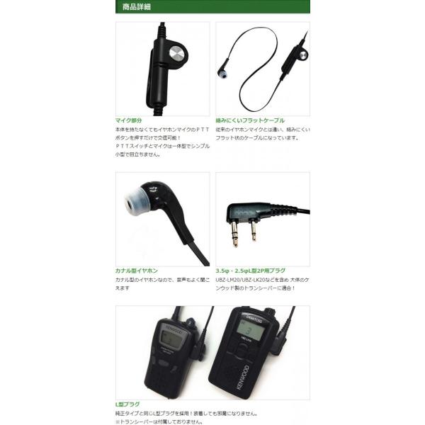 ケンウッド用 イヤホンマイク 2ピン デミトス用 UBZ-LP20 UBZ-LS20 UBZ-LM20 UBZ-LK20 UTB-10などに対応 絡まないケーブルカナル型 EMC-3 EMC-11互換 GK011