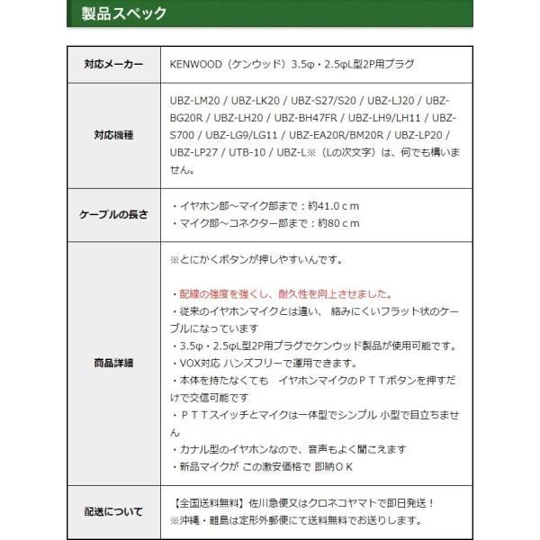 ケンウッド用 イヤホンマイク 2ピン デミトス用 UBZ-LP20 UBZ-LS20 UBZ-LM20 UBZ-LK20 UTB-10などに対応 ショートケーブル 耳掛け式 EMC-3 EMC-12互換 FAMZKM