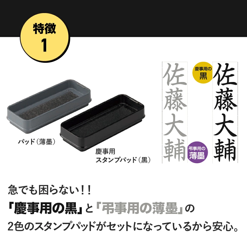 ●黒・薄墨2色のスタンプパッド付きで、慶事では黒、弔事では薄墨を使い分けることができます。