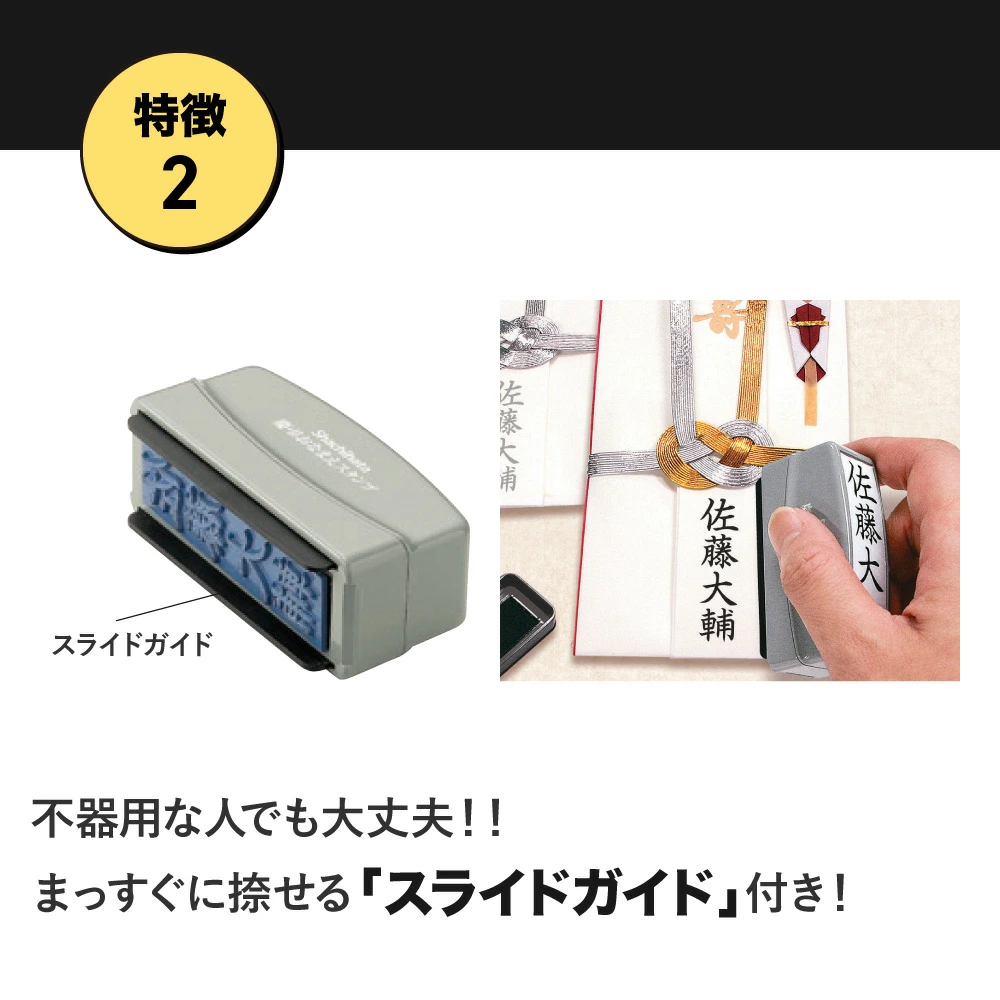 ●スライドガイド付きだから、まっすぐキレイになつ印ができます。