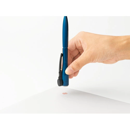 一本の中にシャープペンシル、油性ボールペン、直径9mmのネーム印を内蔵したネームペン。
