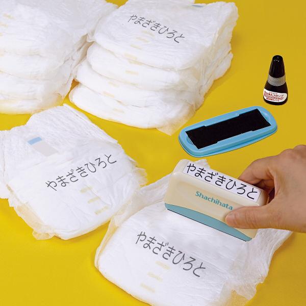 水ににじまず、乾きの速い油性インキを採用。たくさんのおむつへの名前書きもスタンプで簡単にできます。
