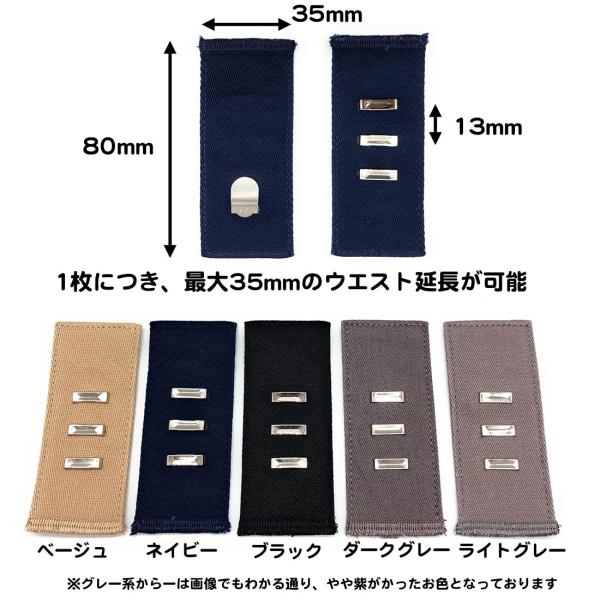 ・年齢によりサイズが小さくなってしまったスーツのズボンなどのフックに引っ掛けるだけで1個あたり最大35mmの延長が可能。