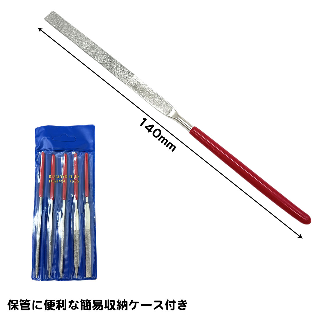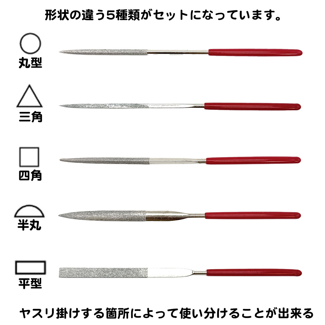 5種類セット ダイヤモンドヤスリ 140mm 細い 半円 丸棒 角棒 平面 三角 四角 半丸 両面 棒 プラモデル フィギュア ホビー やすり 研磨 工具 面取り バリ取り DIY