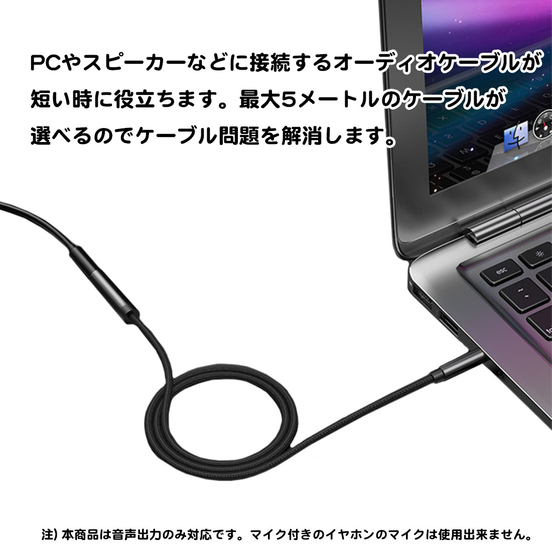 USB-C AUX 変換ケーブル 1m DAC内蔵 ステレオミニプラグ 3.5mm 3極 端子 オーディオジャック Type-c スマホ アンプ スピーカー カーナビ パソコン メッシュ