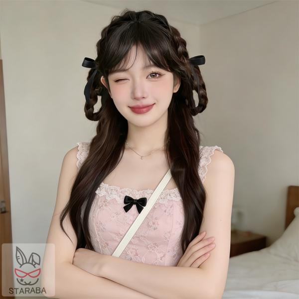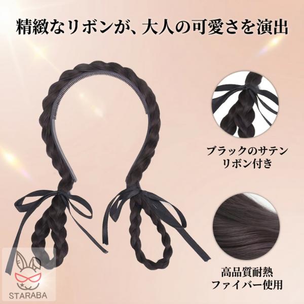 地雷系カチューシャ 三つ編みカチューシャ ウィッグ付きカチューシャ ツインテール 付け毛 小顔 4色 かわいさ全開! 闇かわいい ヘアアレンジ 送料無料