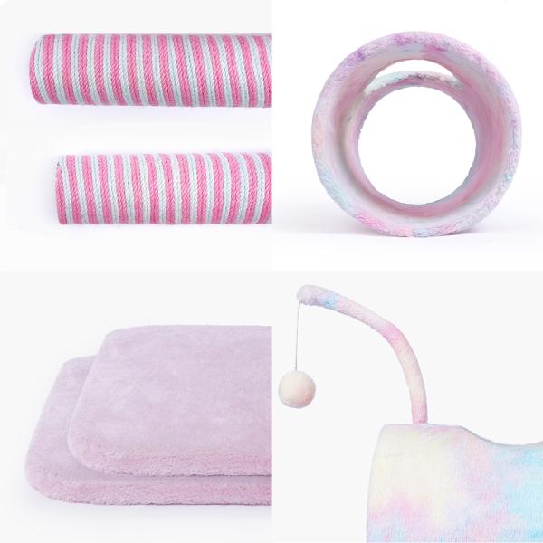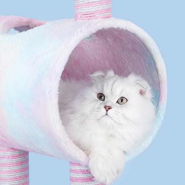 足の部分は麻縄がしっかり巻かれているので、遊びながら爪のお手入れができます。 トンネルにはふわふわ素材でリラックスでき、お昼寝にもピッタリ! 猫ちゃんも飼い主さんも大満足のキャットタワーです!