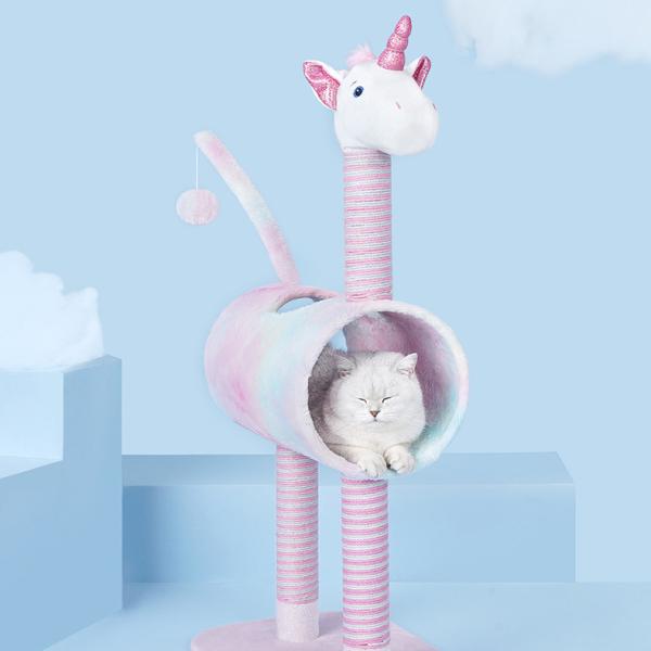 キャットタワー ユニコーン アニマル 据え置き 置き型 爪とぎ インテリア 長持ち 頑丈 トンネル 隠れ家 ポンポン ボール お昼寝 運動不足 遊び場