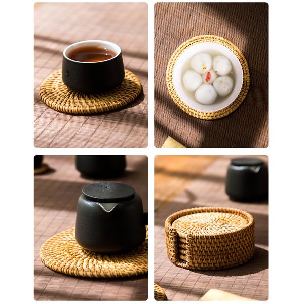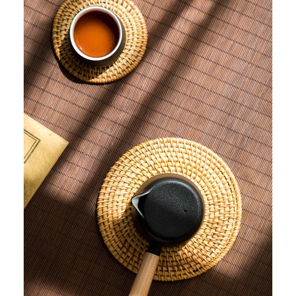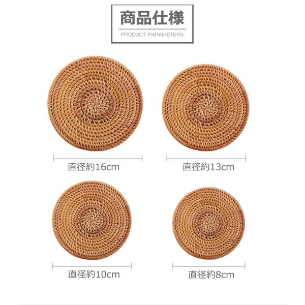 コースター4枚セット ラタンで 藤 円形 丸型 丸いコースター アジアンコースター トレー テーブルウェア モダン おしゃれ 素朴 ナチュラル バリ雑貨 アジアン雑貨 リゾート キッチン小物 エスニック 送料無料