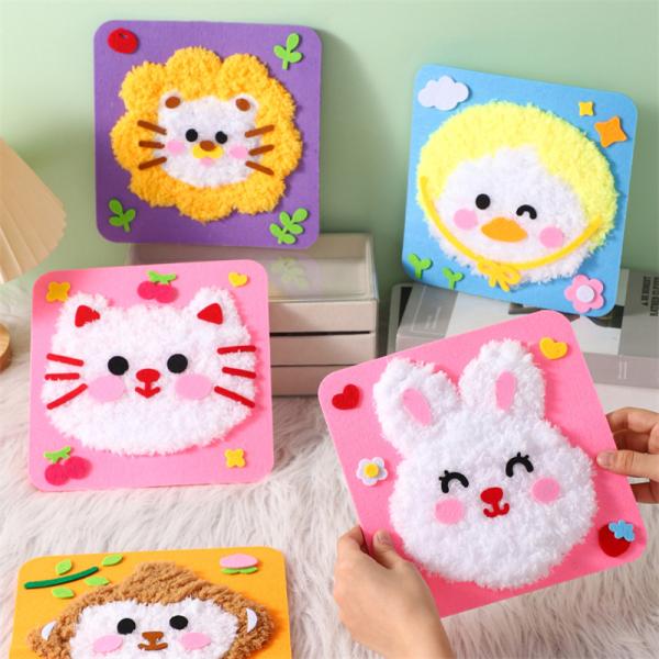 子供手芸キット 子供のパンチニードル アニマル 手作りキット 動物 ネコ ウサギ 材料キット 手作り かわいい キット ハンドメイド 送料無料