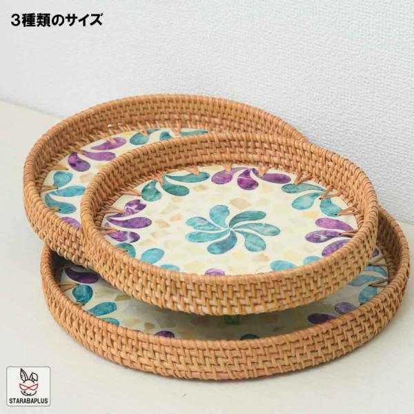 ラタン編み貝皿 手作り 大サイズ トレイ トレー スナックフルーツ用 アジアン おしゃれ ナチュラル ベトナム雑貨 アジアン雑貨 小物 送料無料
