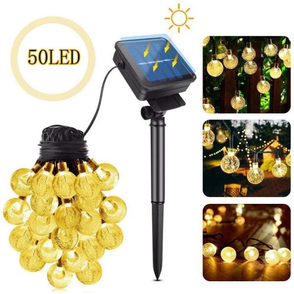 LED イルミネーションライト ソーラー キャンプ用飾り 屋外 室内 防水 50電球 9.5m 8点灯モード 自動点灯 おしゃれ クリスマス バースデー 送料無料