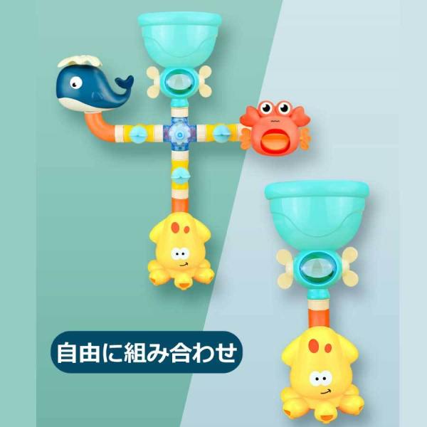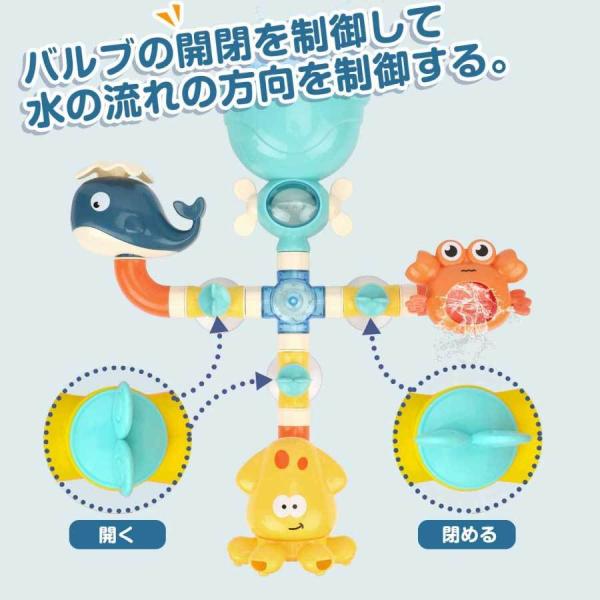 【楽しいお風呂おもちゃ】このお風呂おもちゃは赤ちゃんの手と目の協調能力と想像力を増強させる。バルブスイッチを調整することにより、異なる水の流れの効果を得ることができます。小さなクジラの噴水、かわいいカニの水車、遊び心のあるタコの回転。