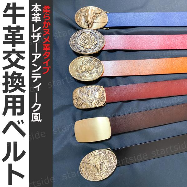牛革 ベルト メンズ 本革 メンズベルト 紳士ベルト 本革ベルト 革ベルト 交換用 バックル無し ウエスタンベルト 黒ブラック