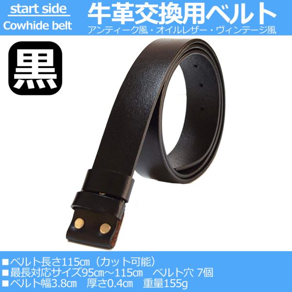 牛革 ベルト メンズ 本革 メンズベルト 紳士ベルト 本革ベルト 革ベルト 交換用 バックル無し ウエスタンベルト 黒ブラック