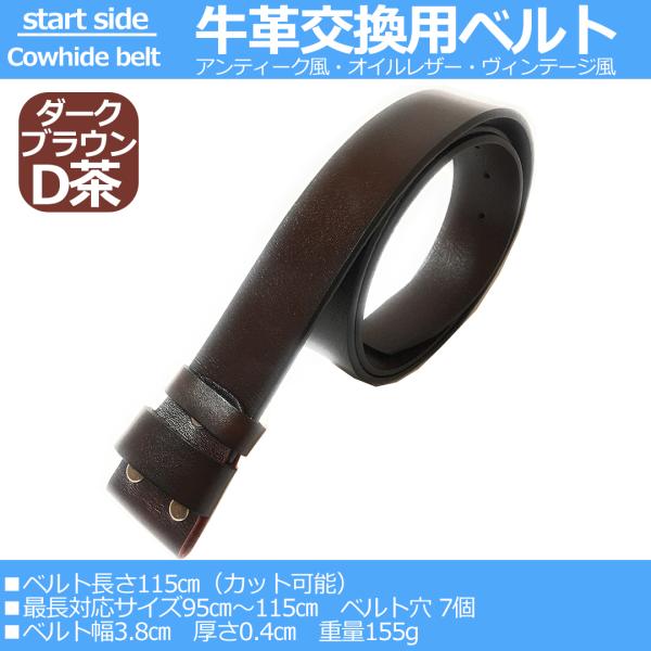 牛革 ベルト メンズ 本革 メンズベルト 紳士ベルト 本革ベルト 革ベルト 交換用 バックル無し ウエスタンベルト ダークブラウン