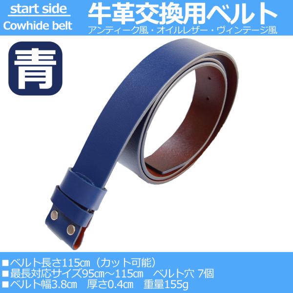 牛革 ベルト メンズ 本革 メンズベルト 紳士ベルト 本革ベルト 革ベルト 交換用 バックル無し ウエスタンベルト 青ブルー