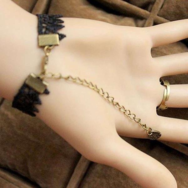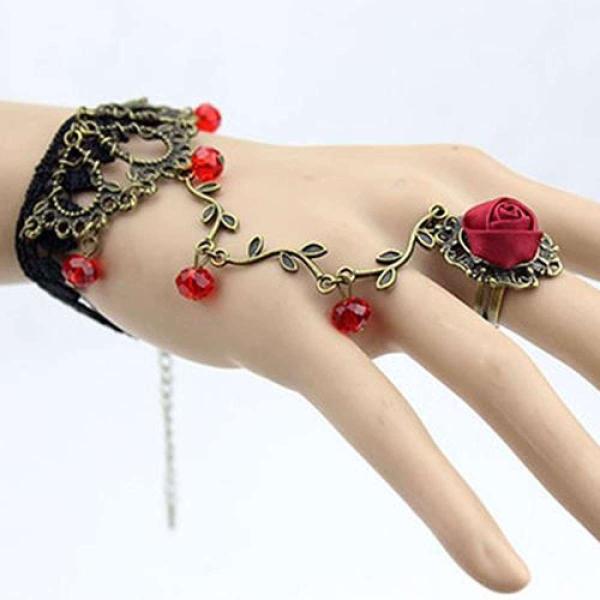 即納 メール便送料無料 代引不可 アンティーク調 ゴシック調 薔薇モチーフ ブラックレース装飾 リングブレス アクセサリー