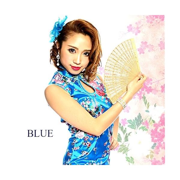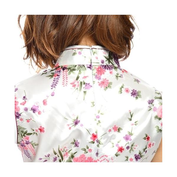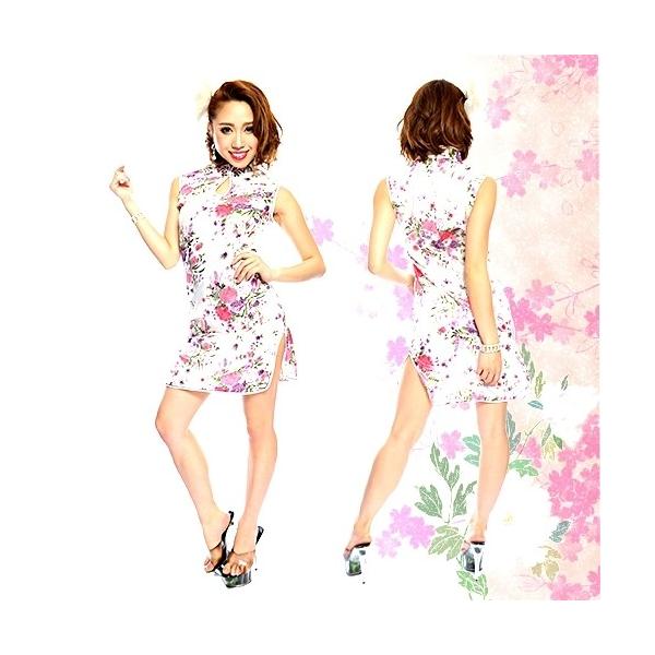 即納 セール チャイナボタン付 小花柄 サテン チャイナミニドレス キャバ嬢 パーティ