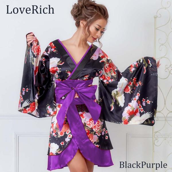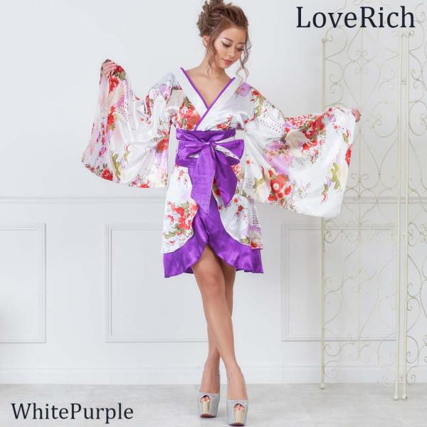 即納 艶やか 帯付 セクシー 胸元 深Vカット 大胆 背中魅せ 純和風 和柄 着物風 ミニドレス よさこい コスプレ キャバ嬢