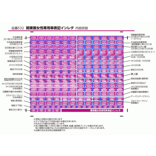 関東地区の女性専用車表示を集めたNゲージ(1/150スケール)用インレタです。JRから民鉄まで、関東でよく見かける31種類を集めました。