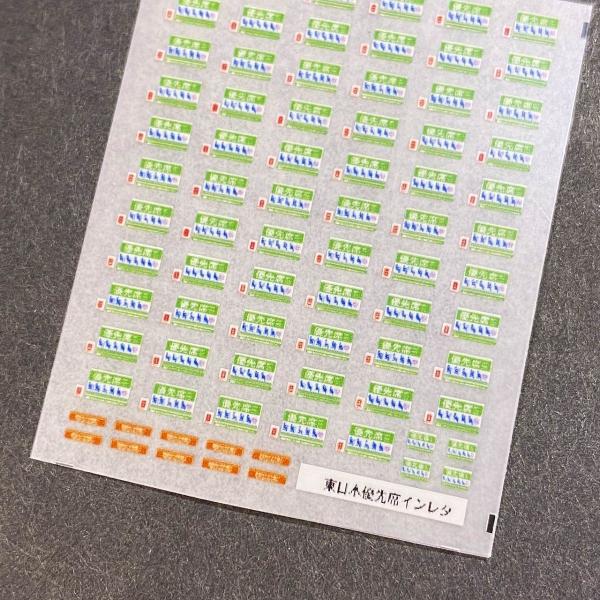【表(車体外)から貼るNゲージ(1/150スケール)用インレタです。裏貼りもございます】東日本用の優先座席Nゲージ(1/150スケール)用インレタです。・優先席表記ヘルプマーク付加後・埼京線の防犯カメラ表記