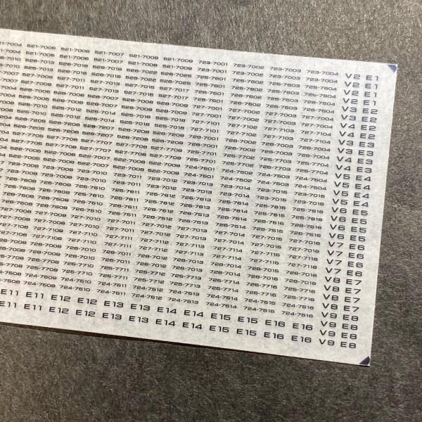 主にこだまで使用される、8両編成の500系7000番台と700系7000番台の車番Nゲージ(1/150スケール)用インレタです。収録内容・車番・(乗務員室扉付近にある)乗務員用編成標記いずれもV2〜V9編成とE1〜E16編成を収録しております(余談ですが、V1編成というのは500系では存在しません)。