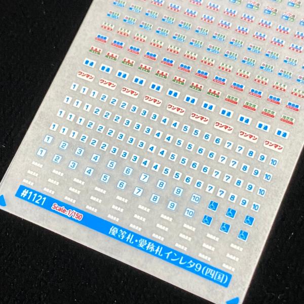 四国所属の普通車やキハ185系向けのドア横愛称サボを収録したインレタです。優等札・愛称札シリーズ第9弾。