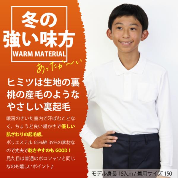 裏起毛 ポロシャツ 白 キッズ 長袖 あったか 起毛 冬 小学校