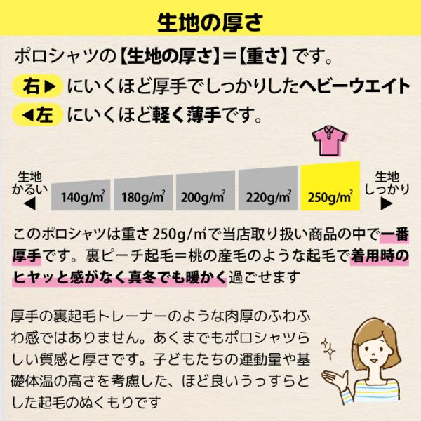 『真冬に少しでもあったかいポロシャツ』を実現した250g/m2厚手ポロシャツです。