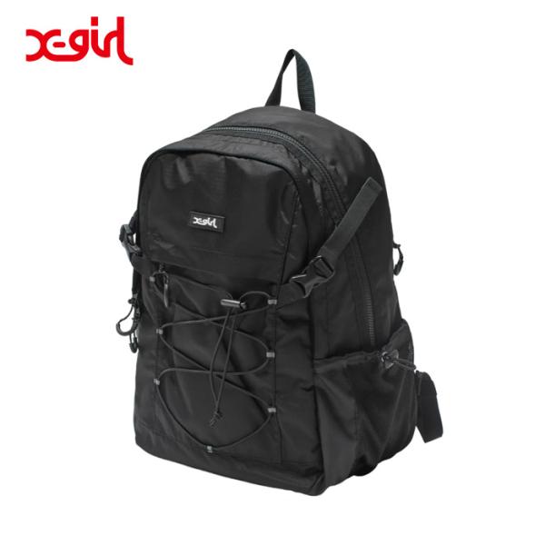X-girl エックスガール MILLS LOGO RUBBER PATCH BUNGEE CORD BACKPACK 105261053012 バンジーコードバックパック ロゴ リュック 黒 おしゃれ 正規取扱店