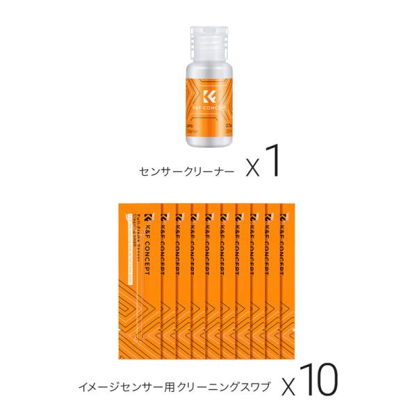 K&F Concept(ケーアンドエフコンセプト)のイメージセンサー・レンズ用クリーナー液(20ml)1本と、イメージセンサー用クリーニングスワブ(フルサイズセンサー用)10本入りのセットです。
