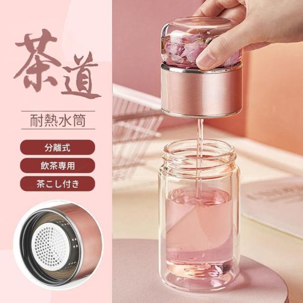 分離式 ティーボトルボトル 茶こし付き ガラス 水筒 耐熱ボトル ティーカップ ティーポットマイボトル マグボトル 透明 耐熱 二重ガラス 男女兼用